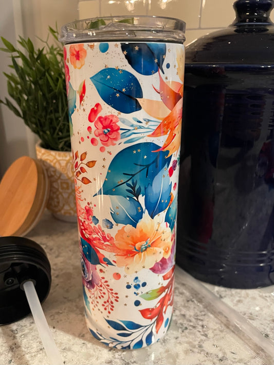 20 ounce Insulated Skinny Tumbler - Rainbow Bright Flowers