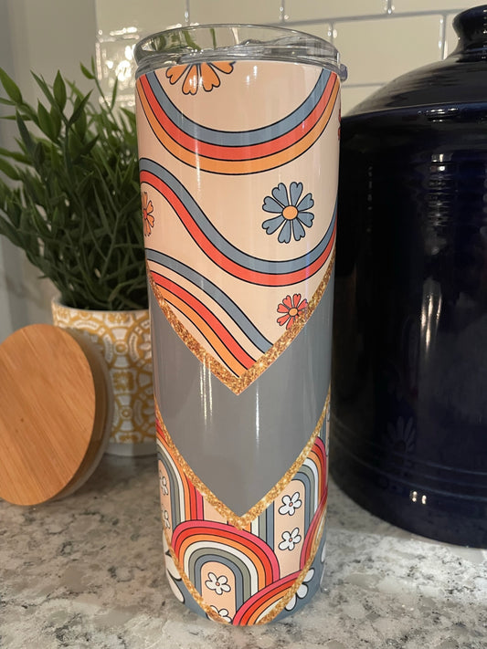 20 ounce Insulated Skinny Tumbler - Clear Bright Rainbow Flowers