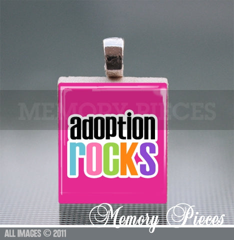 'Adoption Rocks' Scrabble Tile Pendant with Ball Chain