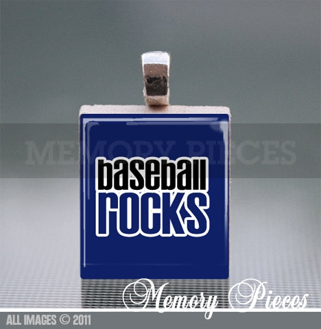 'Baseball Rocks' Scrabble Tile Pendant with Ball Chain