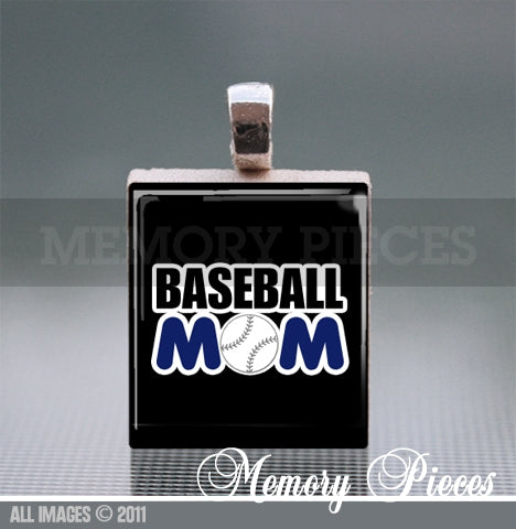 'Baseball Mom' Scrabble Tile Pendant with Ball Chain