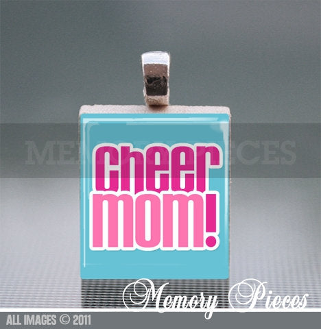 'Cheer Mom!' Scrabble Tile Pendant with Ball Chain