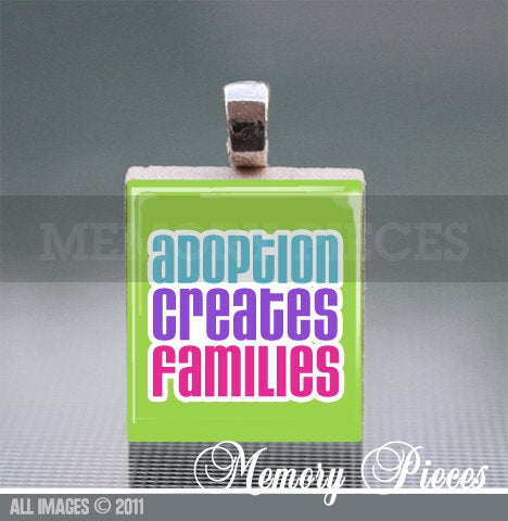 'Adoption Creates Families' Scrabble Tile Pendant with Ball Chain