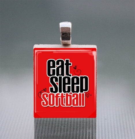 'Eat Sleep Softball' Scrabble Tile Pendant with Ball Chain