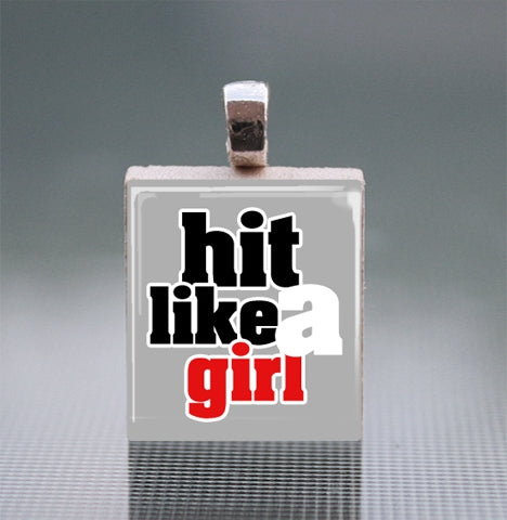 'Hit Like A Girl' Scrabble Tile Pendant with Ball Chain