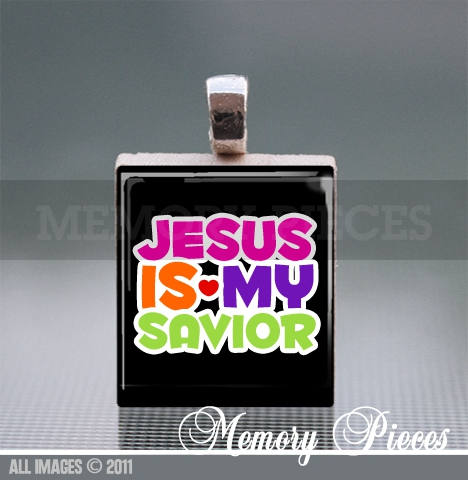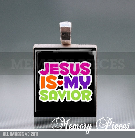 Jesus is my Savior Scrabble Tile Pendant with Ball Chain