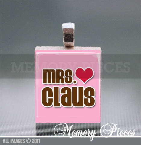 Mrs. Claus Scrabble Tile Pendant and Silver Ball Chain Necklace