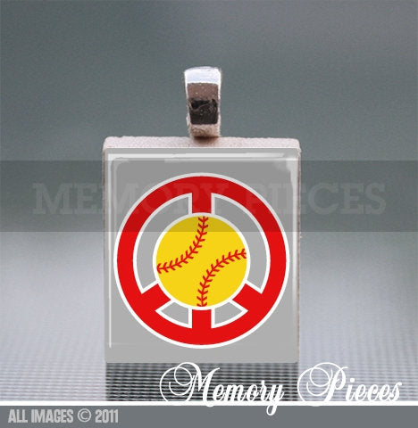 Softball Peace Scrabble Tile Pendant with Ball Chain