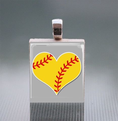 Softball Heart Scrabble Tile Pendant with Ball Chain