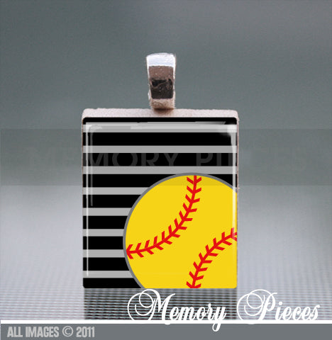 Softball - Stripes Scrabble Tile Pendant with Ball Chain