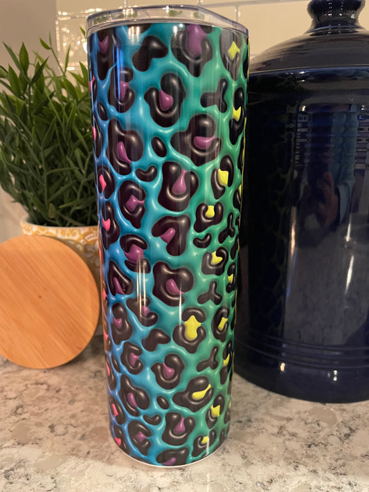 20 ounce Insulated Skinny Tumbler - Rainbow Puffy 3D look Leopard