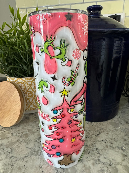 20 ounce Insulated Skinny Tumbler - Pink Grinch