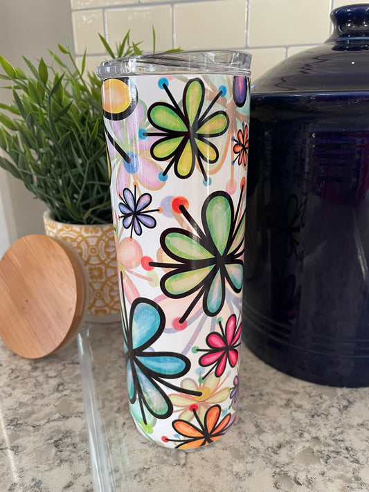 20 ounce Insulated Skinny Tumbler - Rainbow Bright Flowers