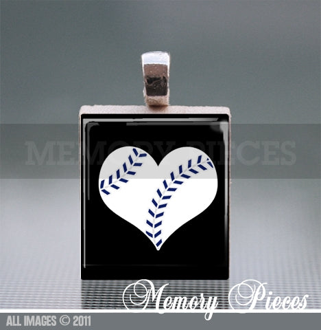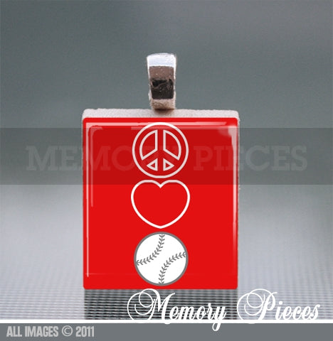 Peace - Love - Baseball Scrabble Tile Pendant with Ball Chain