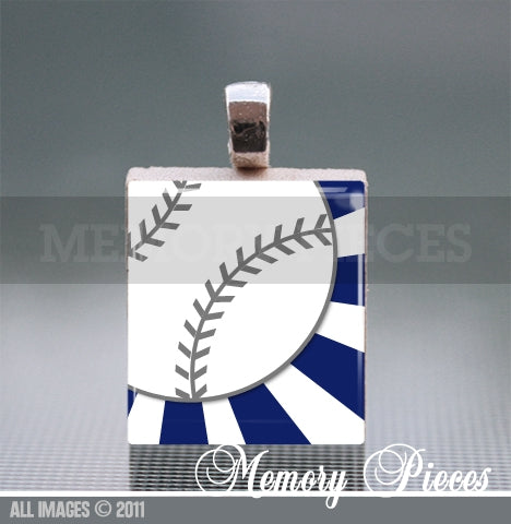 Baseball - Blue Scrabble Tile Pendant with Ball Chain