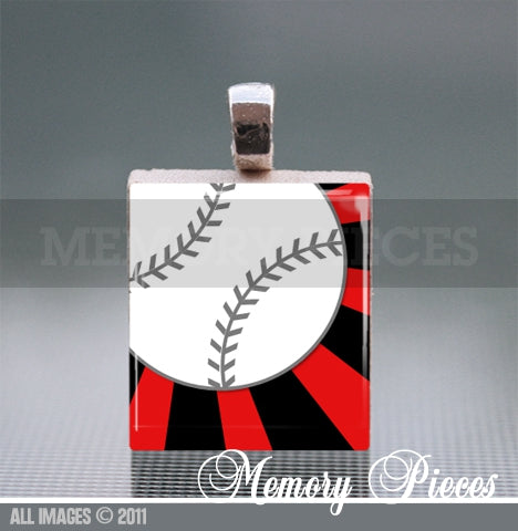 Baseball - Red Scrabble Tile Pendant with Ball Chain