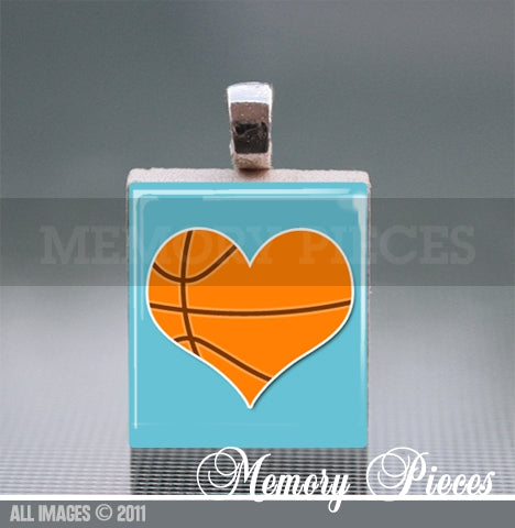 'Peace Love Basketball' Scrabble Tile Pendant with Ball Chain
