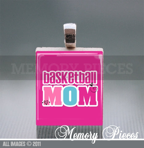 Basketball 'Mom' Scrabble Tile Pendant with Ball Chain