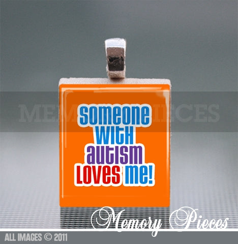 Autism Awareness 'Loves Me!' Scrabble Tile Pendant with Ball Chain