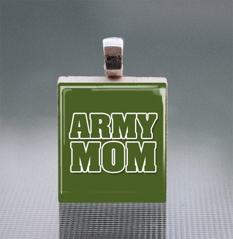 Army Scrabble Tile Pendant with Silver Ball Chain