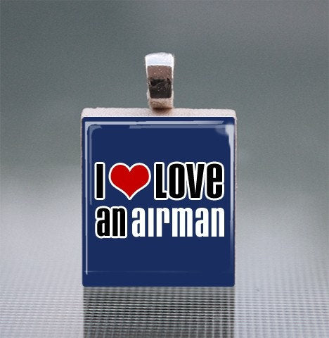 Air Force Scrabble Tile Pendant with Silver Ball Chain