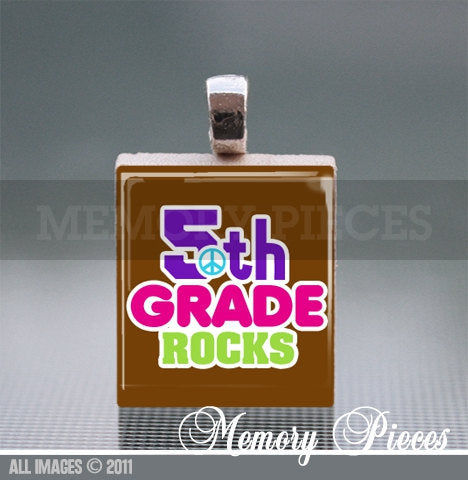 5th Grade Rocks Scrabble Tile Pendant with Silver Ball Chain
