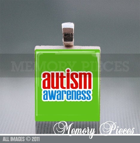 Autism Awareness Scrabble Tile Pendant with Silver Ball Chain.