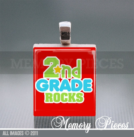 2nd Grade Rocks Scrabble Tile Pendant with Silver Ball Chain
