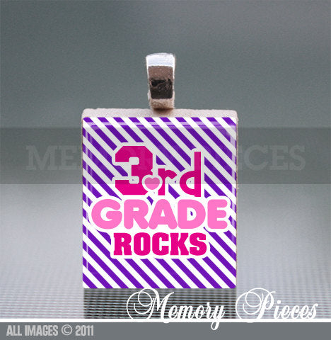 3rd Grade Rocks Scrabble Tile Pendant with Silver Ball Chain
