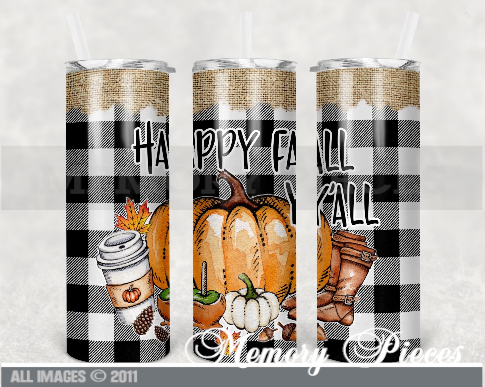 20 ounce Insulated Skinny Tumbler - Happy Fall Ya'll - Buffalo Plaid