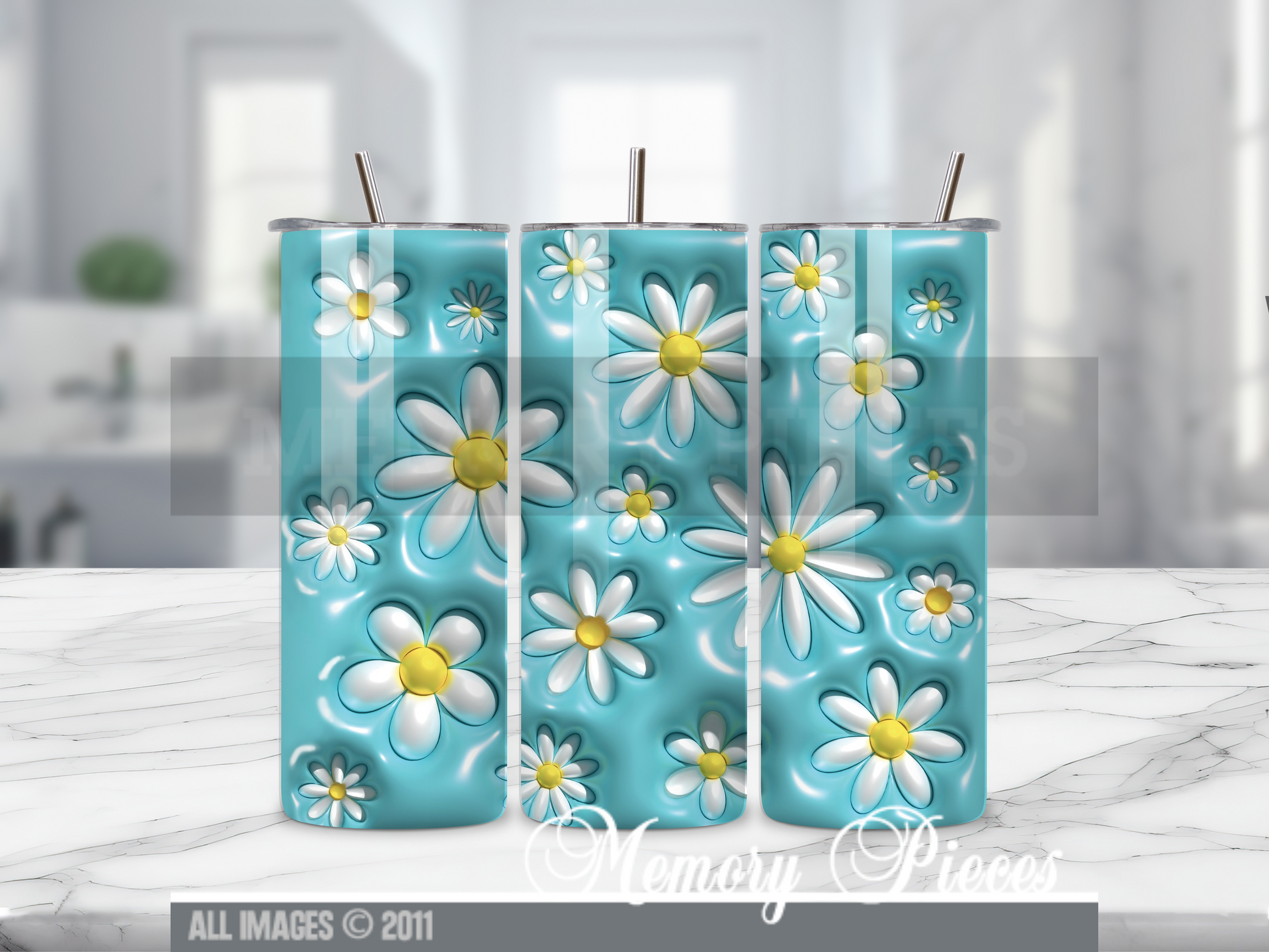 20 ounce Insulated Skinny Tumbler - Blue Daisy Puffy Look