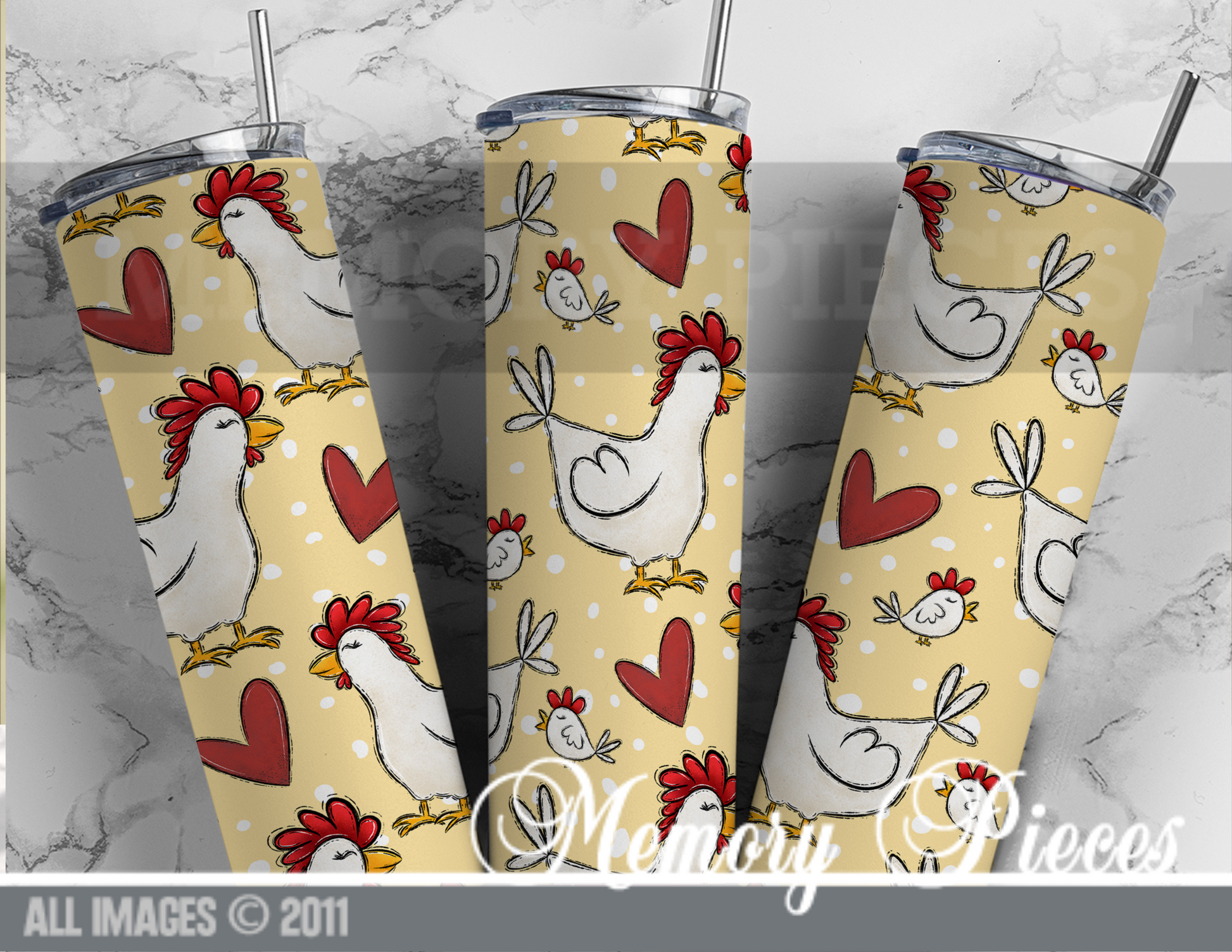 20 ounce Insulated Skinny Tumbler - Chickens with Hearts