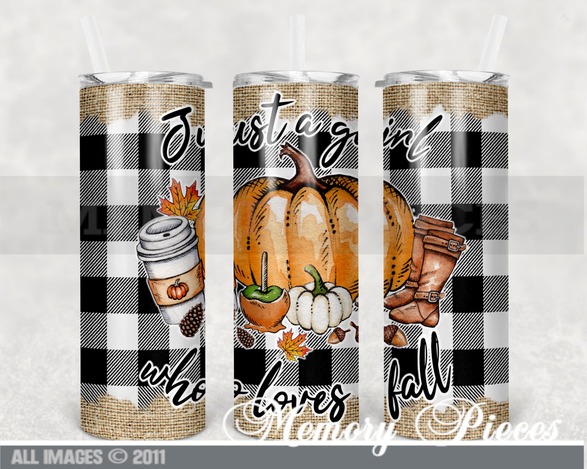 20 ounce Insulated Skinny Tumbler - Just A Girl Who Loves Fall - Buffalo Plaid