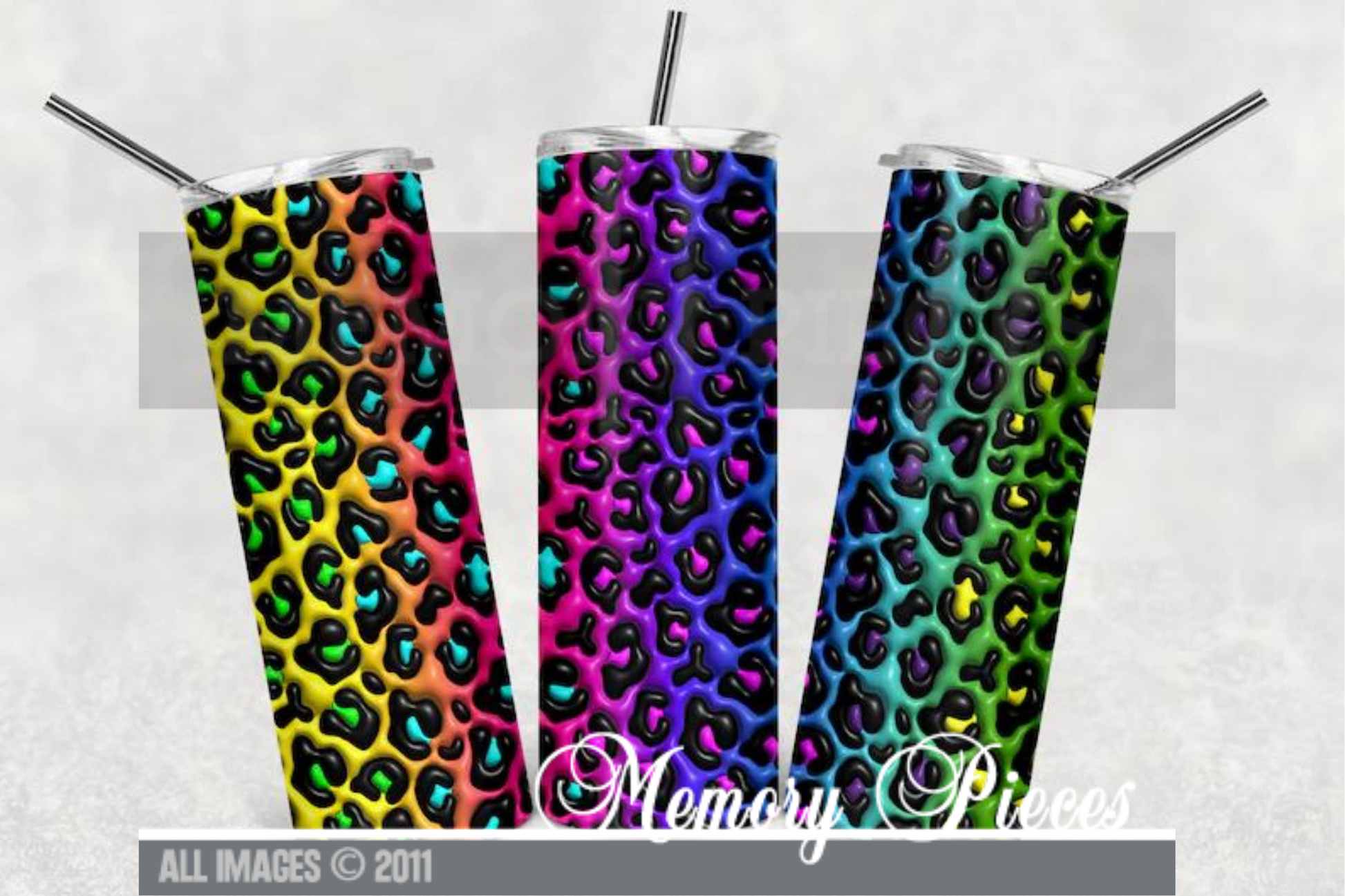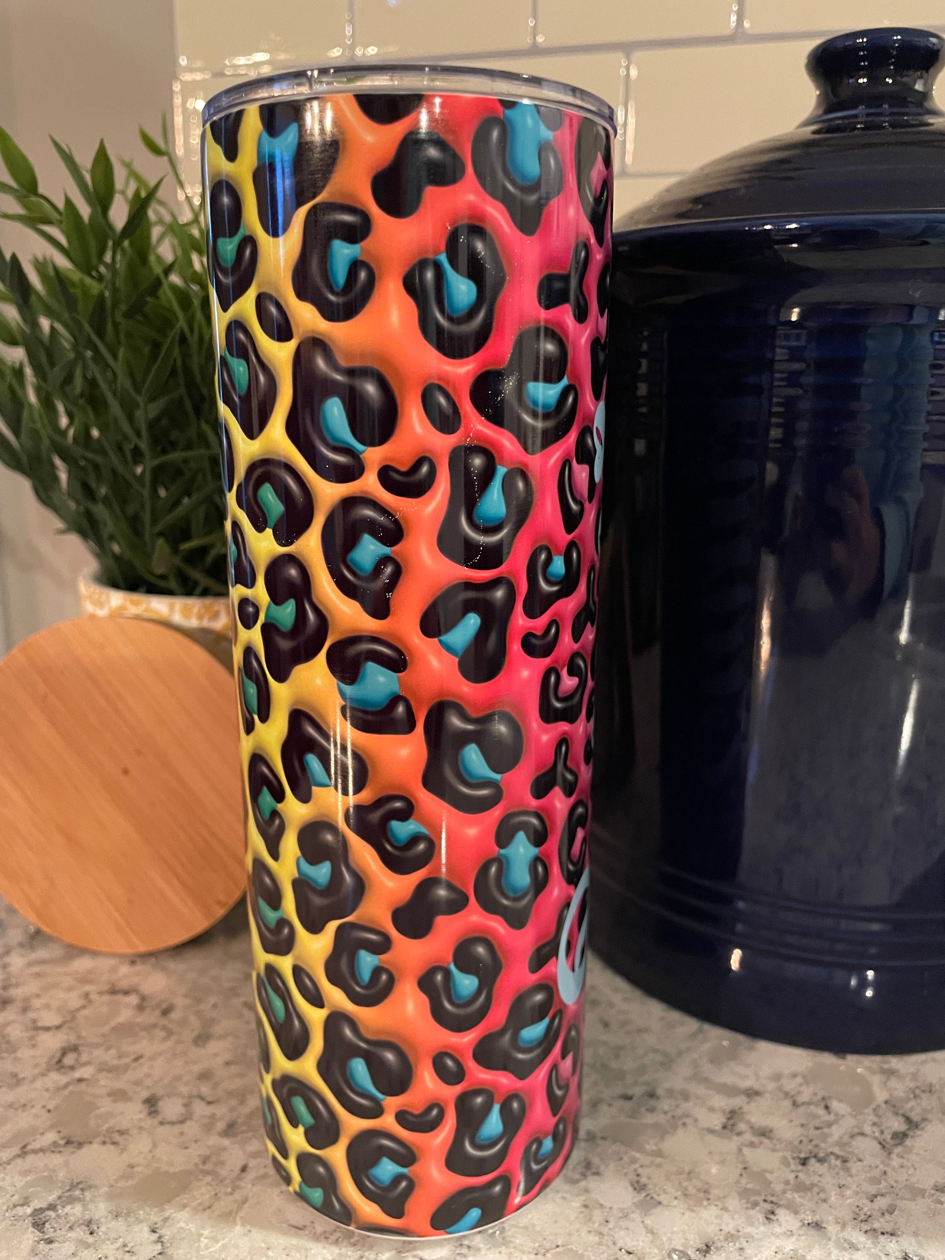 20 ounce Insulated Skinny Tumbler - Rainbow Puffy 3D look Leopard