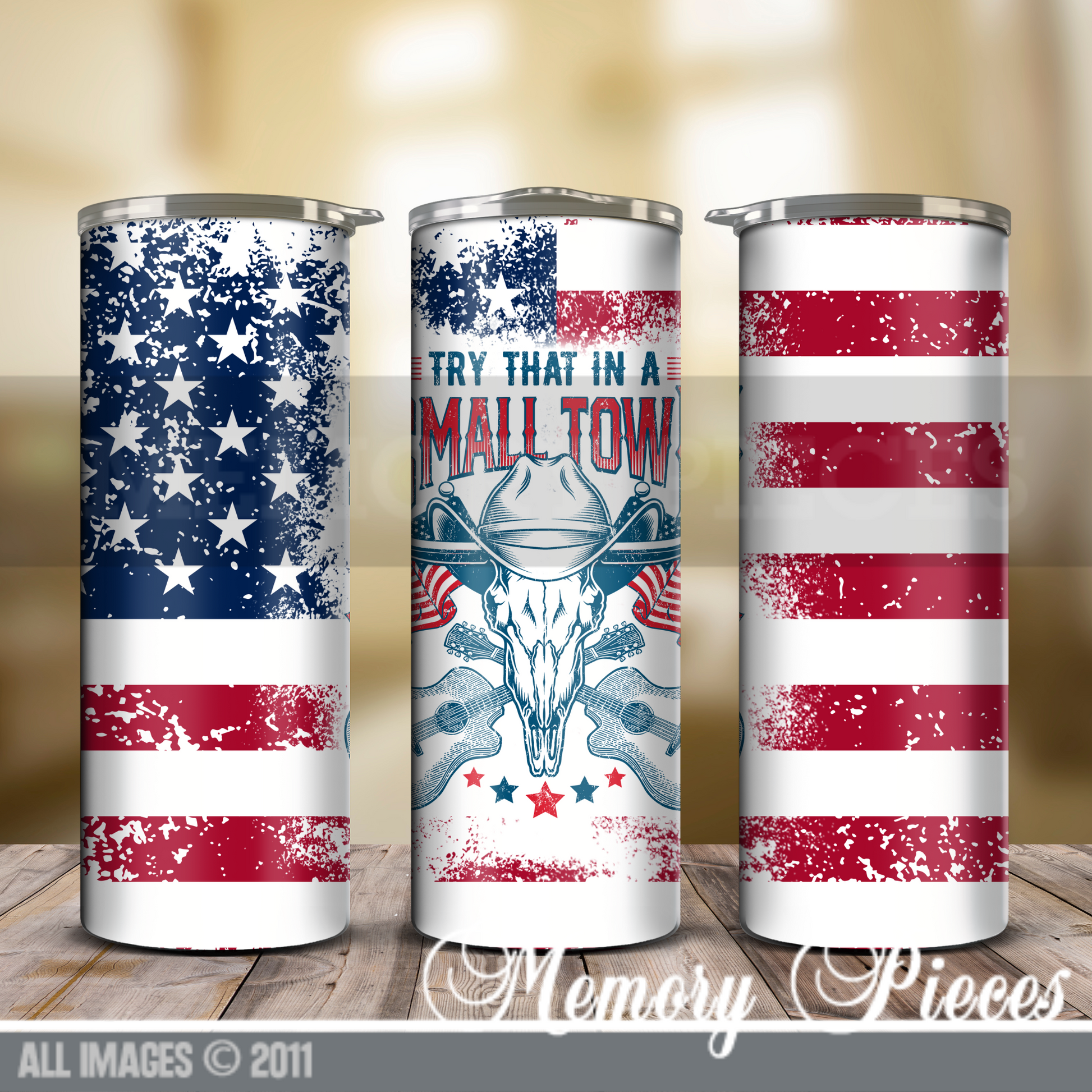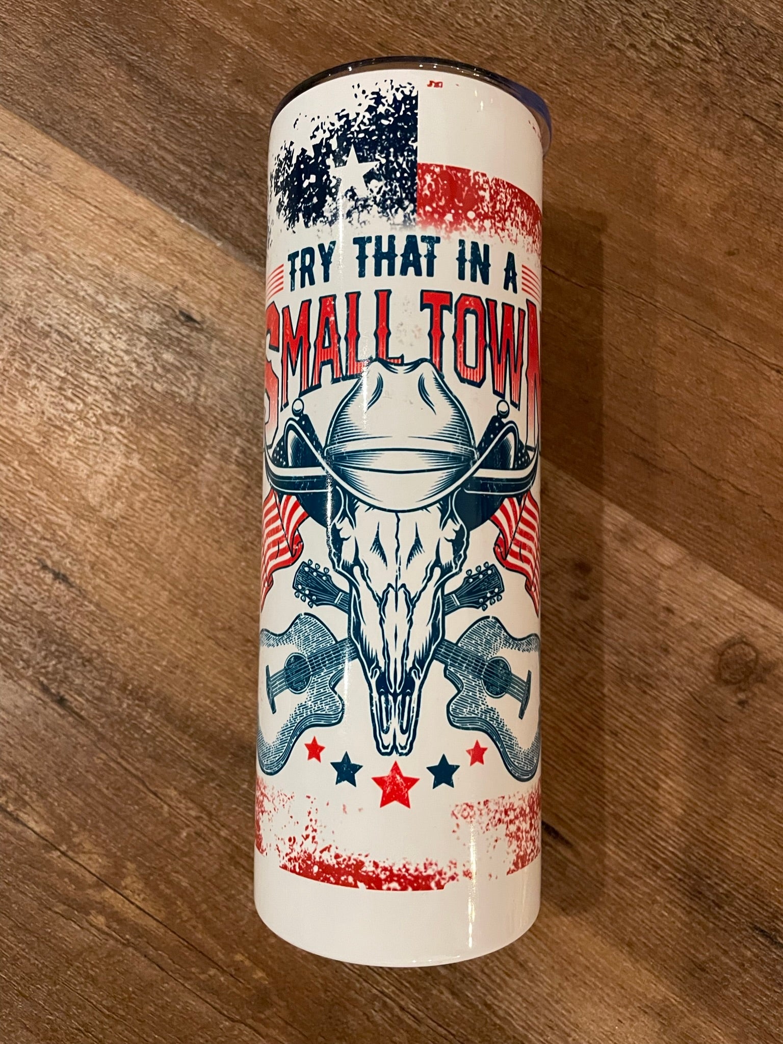 20 ounce Insulated Skinny Tumbler - Try That In A Small Town - Jason Aldean - White Background