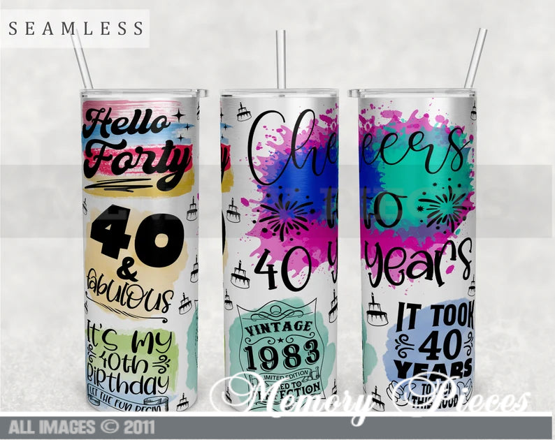 20 ounce Insulated Skinny Tumbler - 40th Birthday