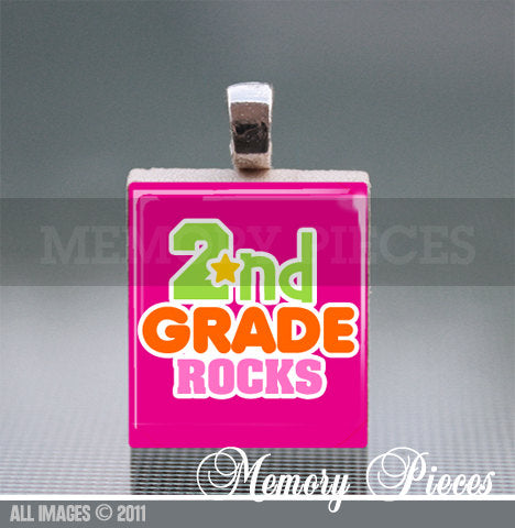 2nd Grade Rocks Scrabble Tile Pendant with Silver Ball Chain