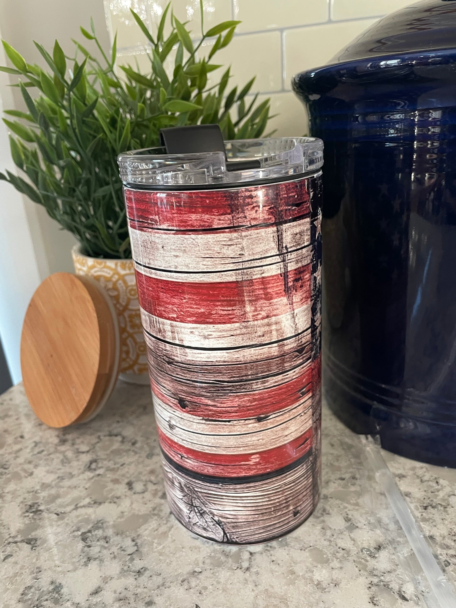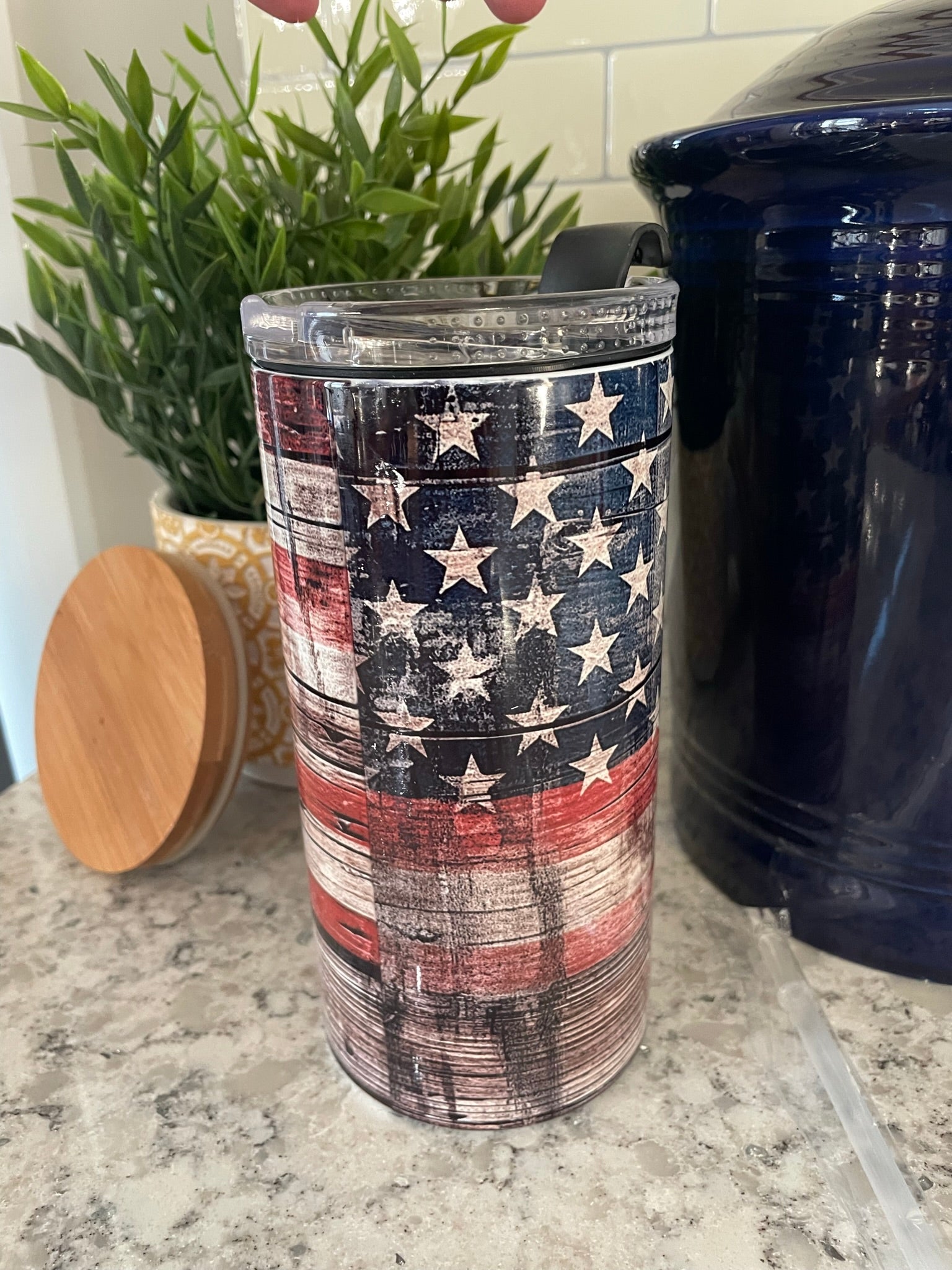 - Includes clear flip top lid to convert it to a 14oz tumbler