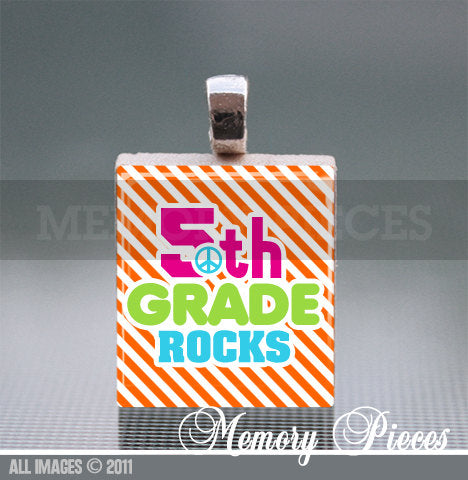 5th Grade Rocks Scrabble Tile Pendant with Silver Ball Chain