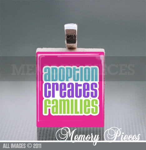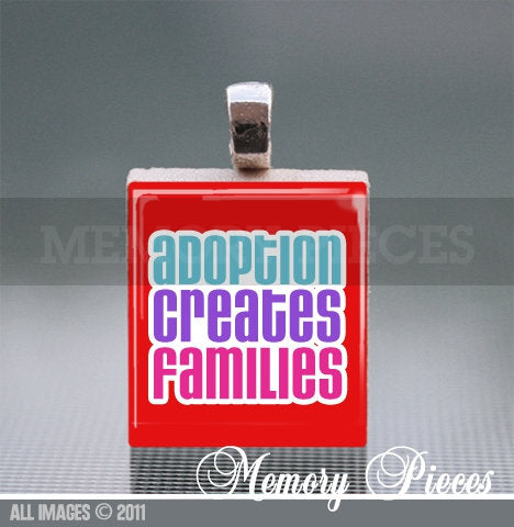 'Adoption Creates Families' Scrabble Tile Pendant with Ball Chain