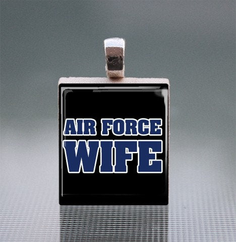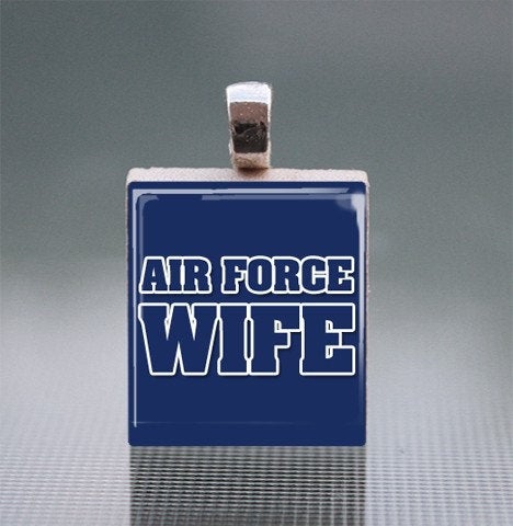Air Force Scrabble Tile Pendant with Silver Ball Chain