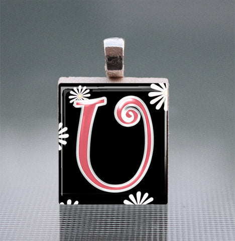 Alphabet U-Z Scrabble Tile Pendants with Ball Chain