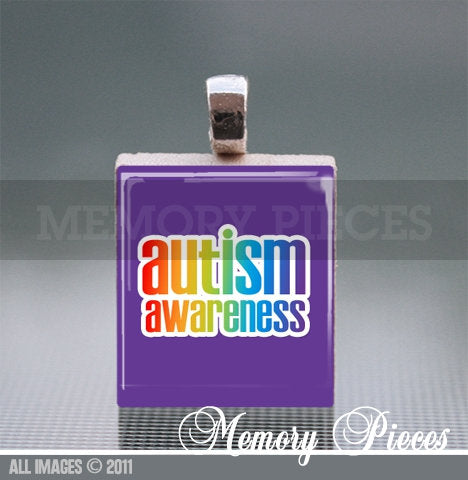 Autism Awareness Scrabble Tile Pendant with Silver Ball Chain.