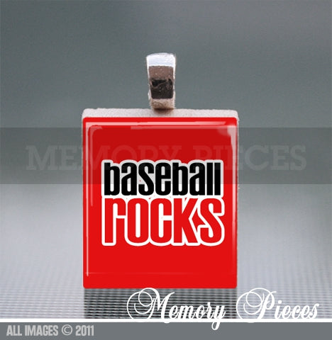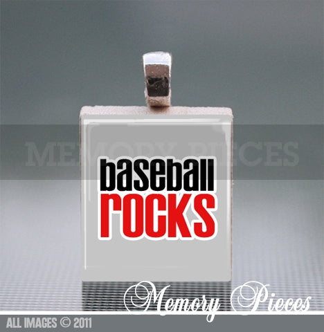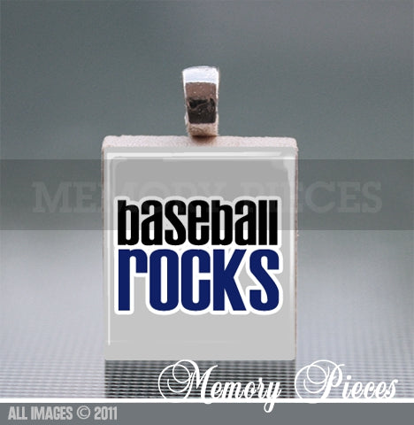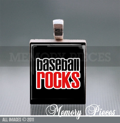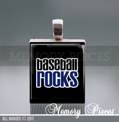'Baseball Rocks' Scrabble Tile Pendant with Ball Chain