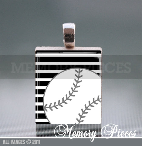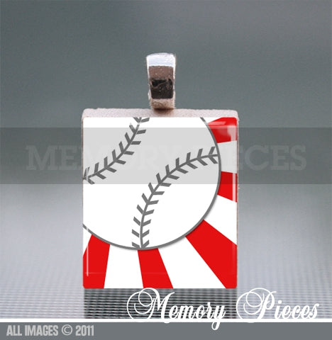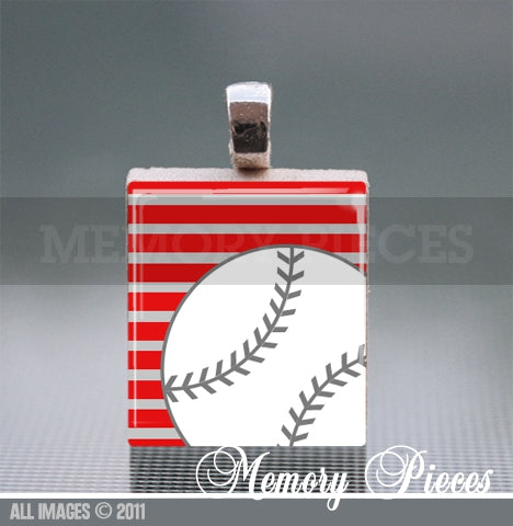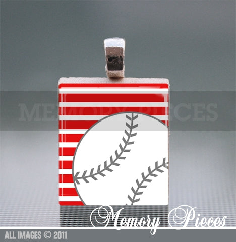 Baseball - Red Scrabble Tile Pendant with Ball Chain
