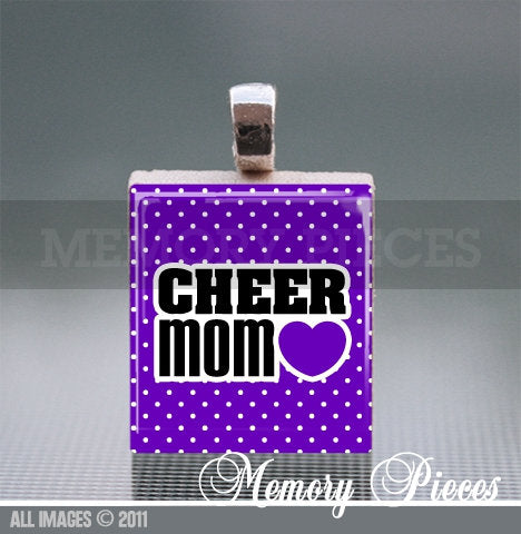 Cheer Mom Scrabble Tile Pendant with Ball Chain
