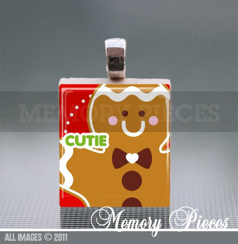 Gingerbread Man Cutie Scrabble Tile Pendant with Silver Ball Chain