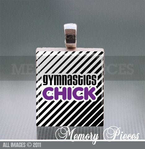Gymnastics Chick Scrabble Tile Pendant with Ball Chain