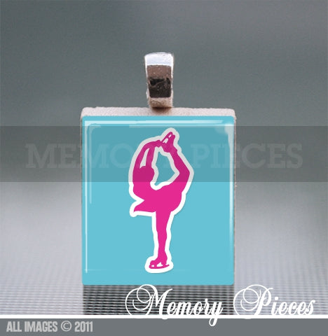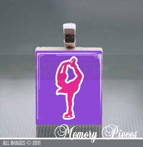 Ice Figure Skater Scrabble Tile Pendant with Ball Chain