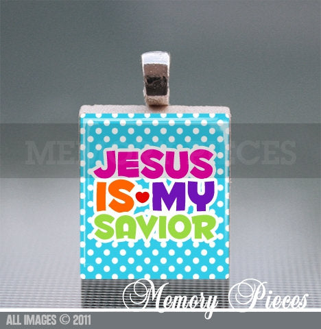 Jesus is my Savior Scrabble Tile Pendant with Ball Chain